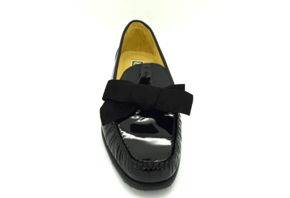 The 338 Is A Bow Detailed Loafer By Hb. The 338 Is Available In A Stunning Patent Leather And Has A Rubber Sole.