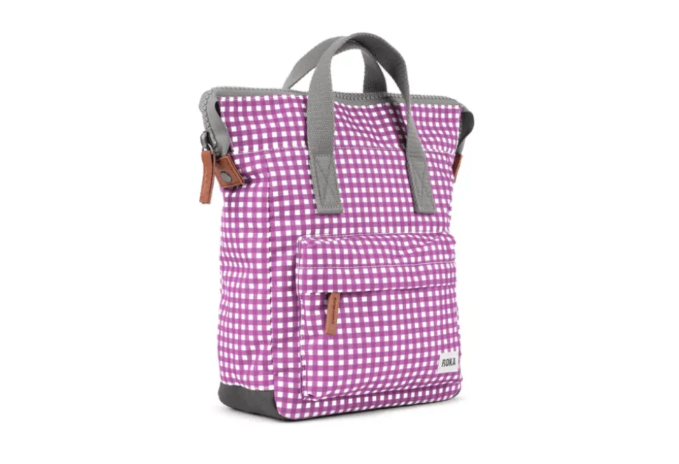 The Gingham Pattern Bantry B Is An Original Backpack By Roka. The Bantry B Features A Chunky Zip At The Top And A Stunning New Summer Gingham Colour.