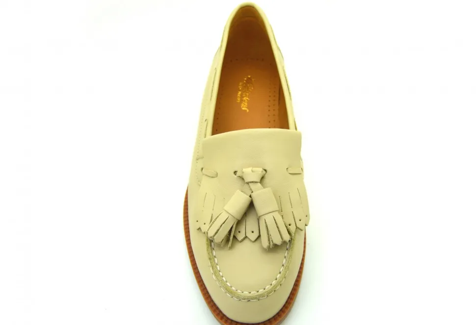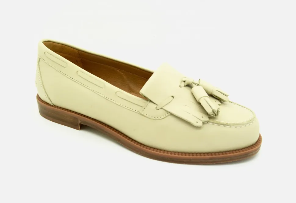 Our Iconic Ladies Loafer, Named After The Historic Yorkshire Town Of Beverley. The Summer Adaptation Of The Beverley Loafer Is Cream And Is A Gorgeous Addition To Any Summer Outfit. The Beverley Loafer Provides Both Sophistication And Comfort. Hand-Crafted In Soft Leather, This Is A Quintessential Loafer For All Occasions. Available In A Variety Of Different Colours And Leathers.