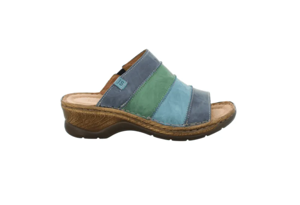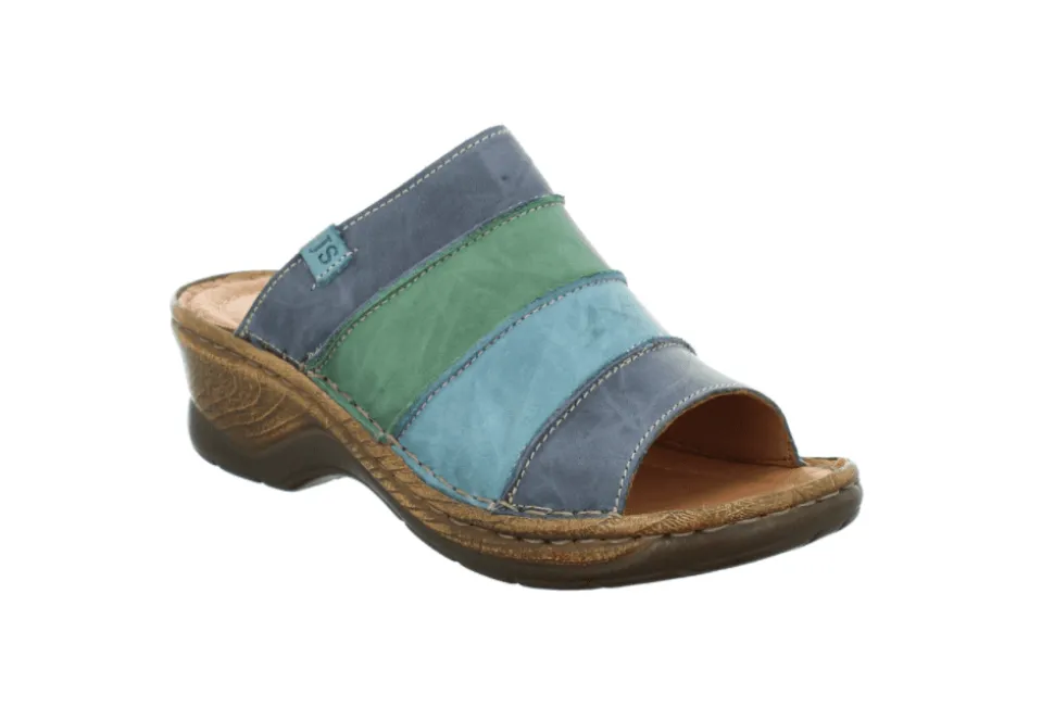 The Catalonia 64 Is A Ladies Clog Sandal By Josef Seibel. The Shoe Features Block Colours And Is A Great Option! The Wood Effect Heel Is Simply Stunning And Adds A New Dimension To The Clog.
