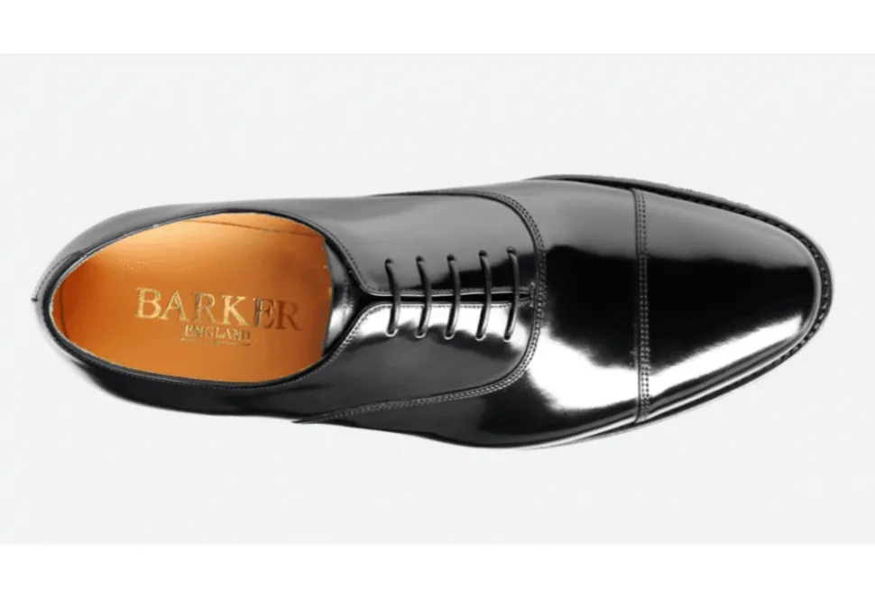 The Cheltenham By Barker Is A Hi Shine Oxford Men’s Brogue. The Black Polish Is A Classic Finish And Is A Great Option For Formal Occasions. This Shoe Is Made In England By Barker In Northampton.