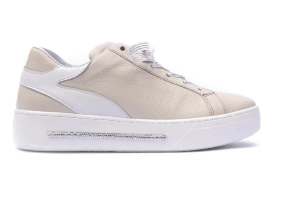 The Cosmic Is A Buffalo Nude Wedged Trainer And Is One Of Latest Designs By Alpe. These Nude Pink Trainers Are Wedged, Made From Beautiful Leather And Will Add Style To Any Outfit. The Trainer Is Complete With White Leather Stripe, Silver Detailing On He Heel And Silver And White Combination Laces.