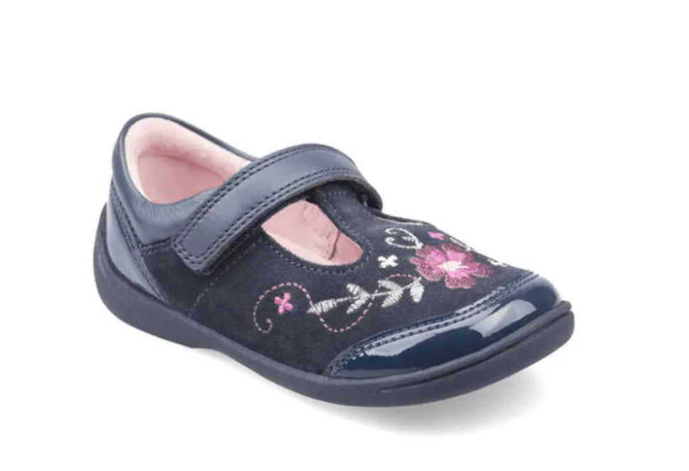 The Dancy Is A Charming T-Bar First Walking Shoe By Start-Rite. The Dance Is A T-Bar Option With A Beautiful Embroidery Floral Pattern Upon A Patent And Suede Mix. The Shoe Features Padded Ankles For Added Ankle Protection And An Easy Velcro Fastening.