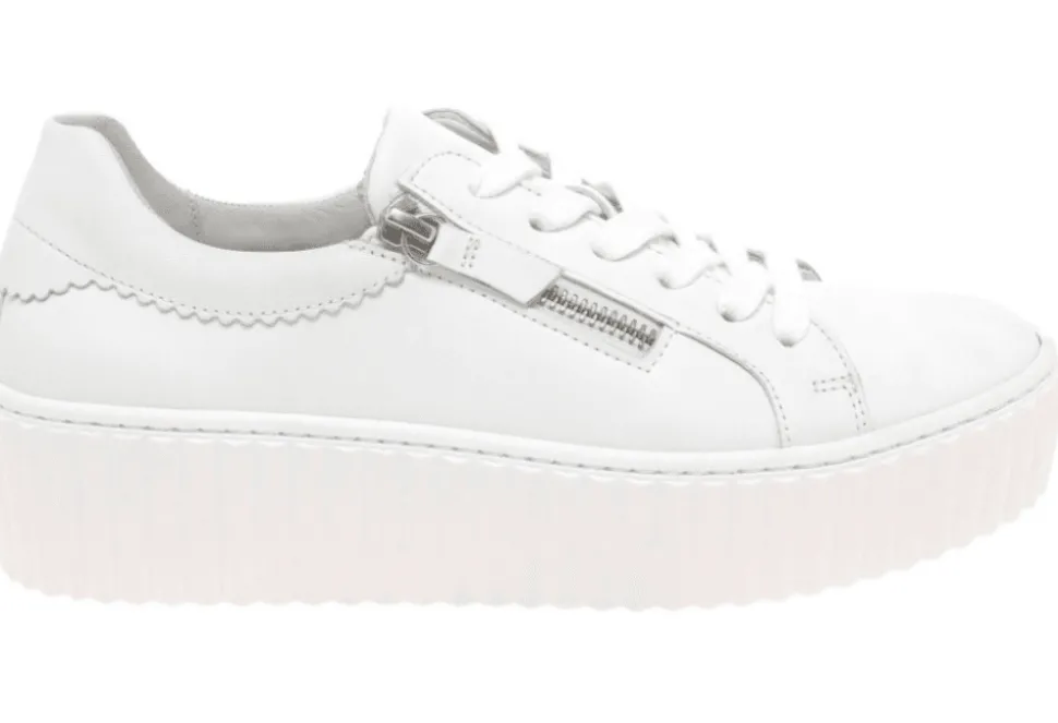 The Dolly Is An On Trend Ladies Trainer By Gabor. The Dolly Features A Platform Sole Unit And Stitch Detailing For A Unique And Versatile Style. The Dolly Also Features Adjustable Laces And A Zip Fastening For A Secure Fit. The Platform And Stunning White Upper Enables This Trainer To Be Extremely On Trend This Year!