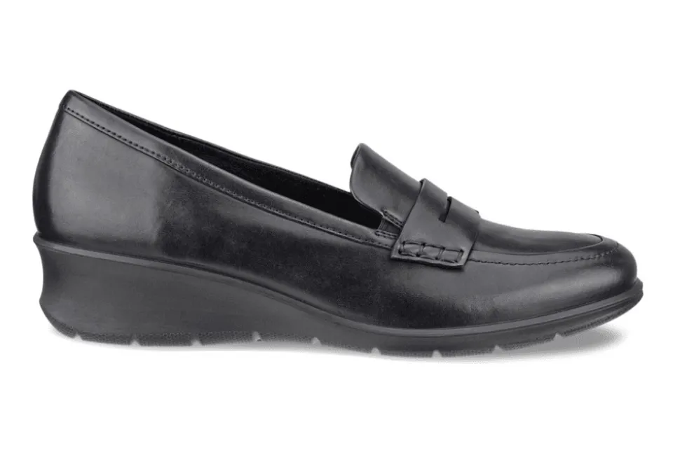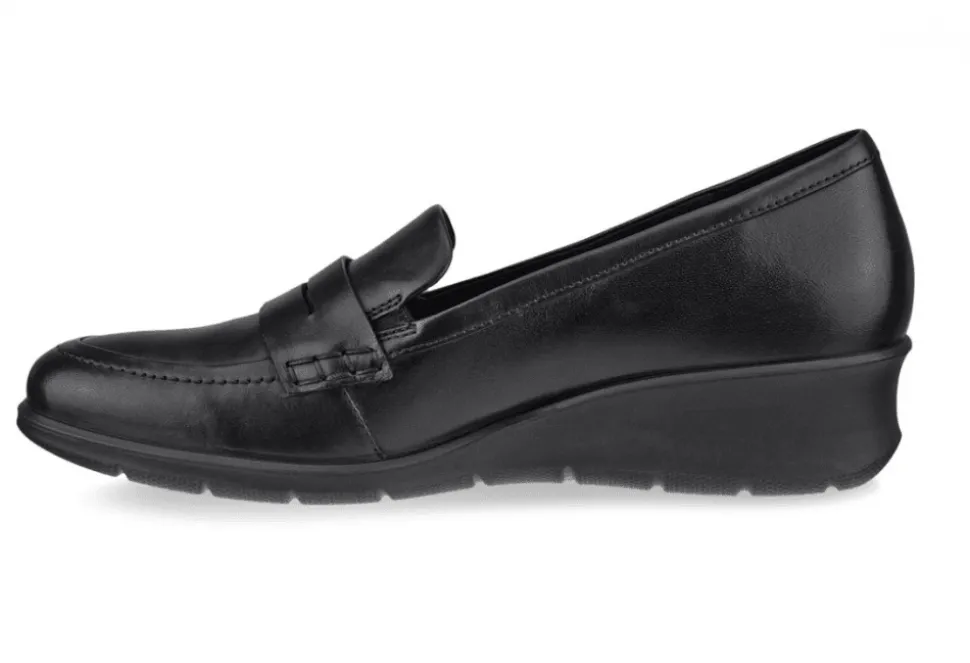 The Felicia Is A Contemporary Take On The Classic Penny Loafer By Ecco. The Felicia Features A Sleek And Comfortable Wedge Heel And Has Been Crafted From A Premium Leather Upper.