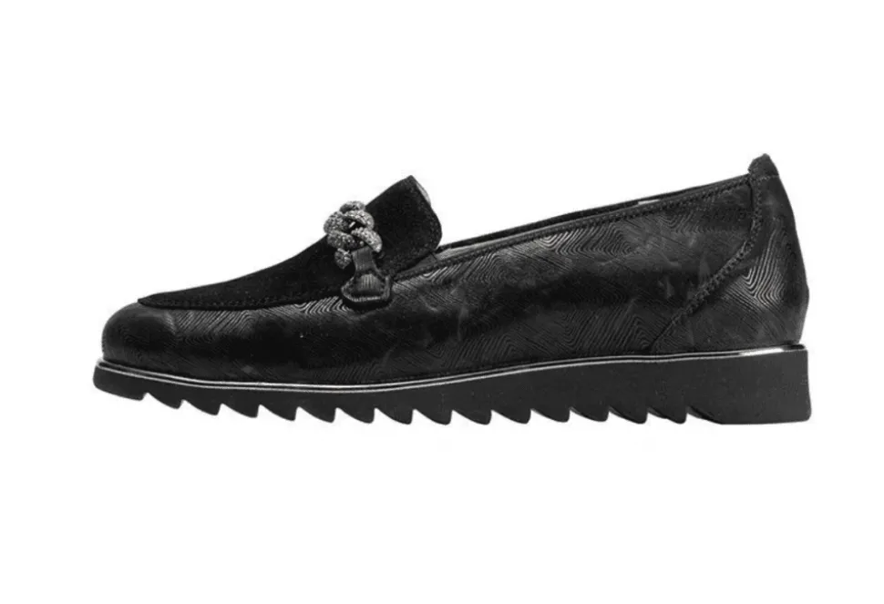 The H Ragna Is A Ladies Loafer By Waldlaufer. The Ragna Features Glitter Embellishment Detailing And 2 Small, Elasticated Inserts. This Is A Wide Fitting Option.
