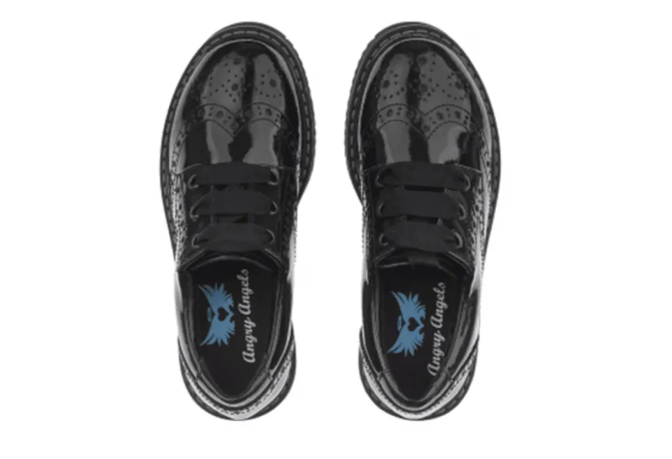 The Impulsive Is A School Lace Up For Girls. This Design Features A Chunky Sole And Brogue Detailing. These Leather School Shoes Are Extremely Fashionable And Have A Unique Style. Cushioned Insoles Give Lasting Comfort And Padded Ankle Supports Helps To Stop Rubbing. The Impulsive Is A Core Part Of The Angry Angels Range.