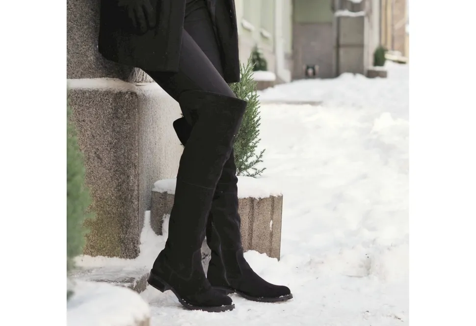 The Ivy By Palmroth Is An Over The Knee Boot Is The Perfect Boot For Winter Weather. These Are Known As The Most Stylish Boots Within The Palmroth Collection. These Black Suede Leather Boots Are Over The Knee. The Shaft Collar Is Lined With Black Nappa So It Can Be Turned Outside To Change The Look Of The Boot. Wear These With Trousers, Skirt Or Even Shorts And You Will Make Some Heads Turn For Sure!