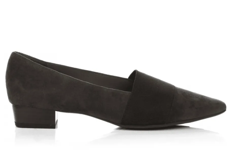 Peter Kaiser Lagos Is A Ladies Trendy Pointed Toe Ballet Pumps In Black Suede – Modern Low Heel Shoes In Classy Black Suede. Comfortable And Classy, Peter Kaiser Lagos Low Heel Shoes In Black Suede Have Pointy Toe Front With Elasticated Top For Premium Fit, Steady 25Mm Heel And Soft Leather Lining For All Day Comfort. Stylish And Practical, Pair Them Up With Cropped Or 7/8 Trousers Or 60S Style Dresses For Trendier Fashionable Look.