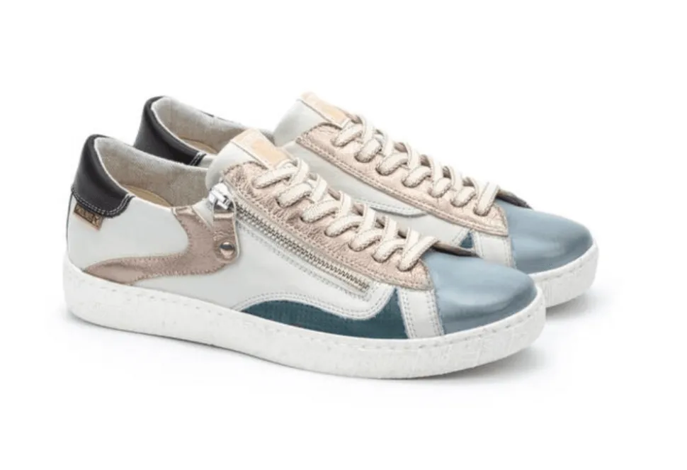 The Lanzarote Is A Ladies Zip Trainer By Pikolinos. The Lanzarote Is A Low Top Trainer In A Stunning Colour Combination. Perfect For All Occasions And Seasons. The Metallics In This Trainer Are Very On Trend For The Season.