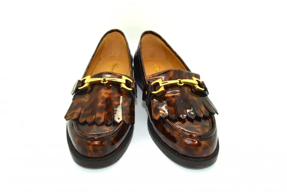 The Staithes Is One Of Our Timeless Classic Pieces In The Watkinson’s Collection. Completed With A Gold Bar, Tassels And Tortoise Shell Detailing This Shoe Provides A Charming Addition To Any Outfit. Crafted In Tortoise Shell Patent Leather This Shoe Is A Fashion Staple For All Seasons.
