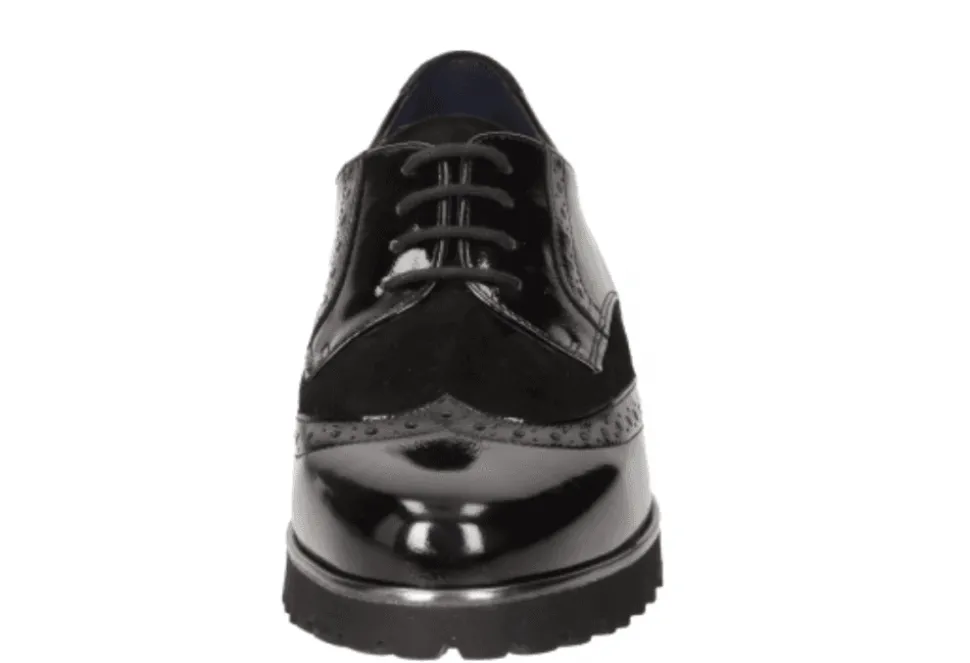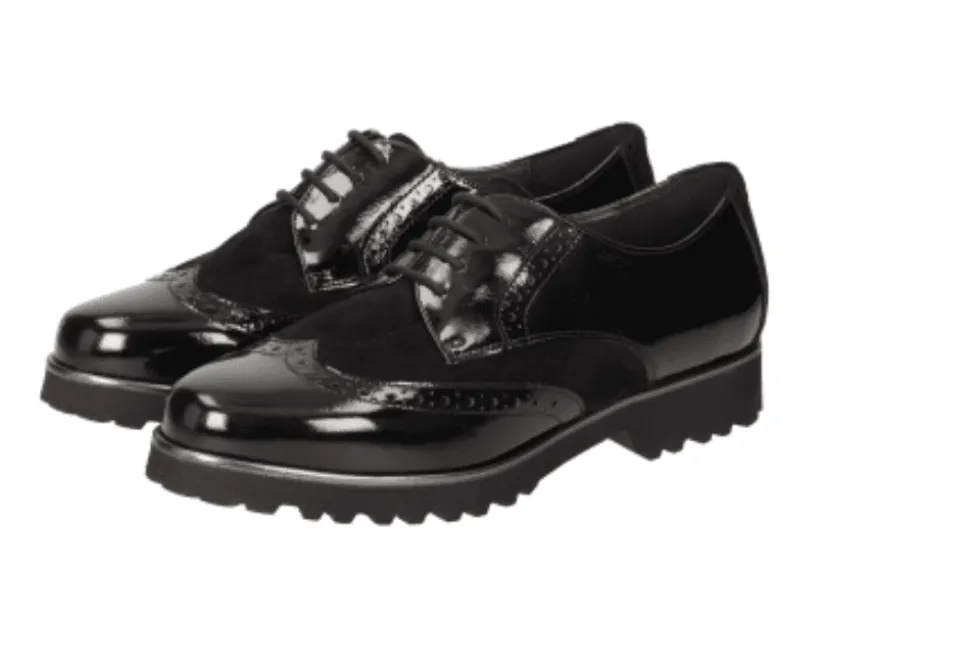 The Meredith 703Xl Is A Wide Fitting Lace Up By Sioux. Made From A Combination Of Patent And Suede Calfskin And A Stretchy Textile Section At The Front. The Meredith 703Xl Is Ideal For Hallux Valgus Suffers (Bunions). Covered Insole With Soft Cushioning Which Can Be Swapped With Own Insole.