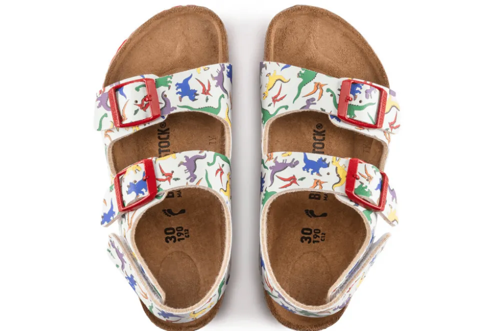 The Milano Is A Cute Children’s Birkenstock Sandal Featuring Dinosaurs. The Milano Is A Great Option For Those Kids Who Love Playing. The Colourful Dinosaur Print Is Guaranteed To Put A Smile On Children’s Faces All Day Long.