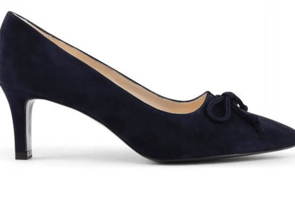 The Mizzy Is A Mid Height Court Shoe By Peter Kaiser. This Suede Leather Heel Features A Decorative Bow.