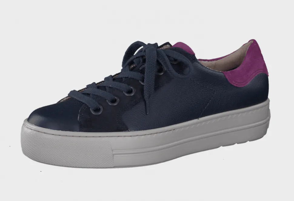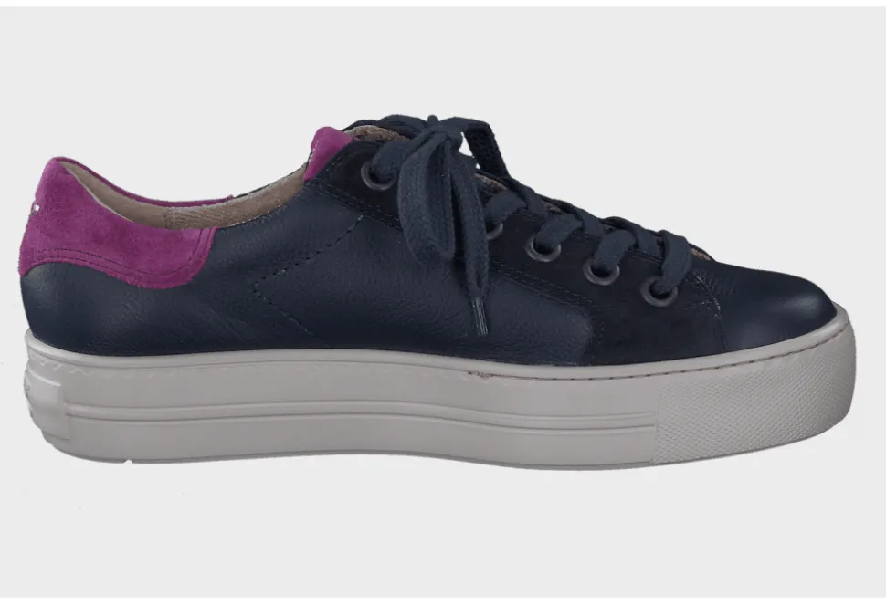Introducing The Phoenix Trainer By Paul Green For Aw23/24. The Phoenix Features A Stunning Navy Blue Leather Upper With A Purple Ankle Detail. The Phoenix Also Features A Darker Chunky Sole Unit- This Trainer Is The Perfect Partner For Any Outfit For This Autumn.