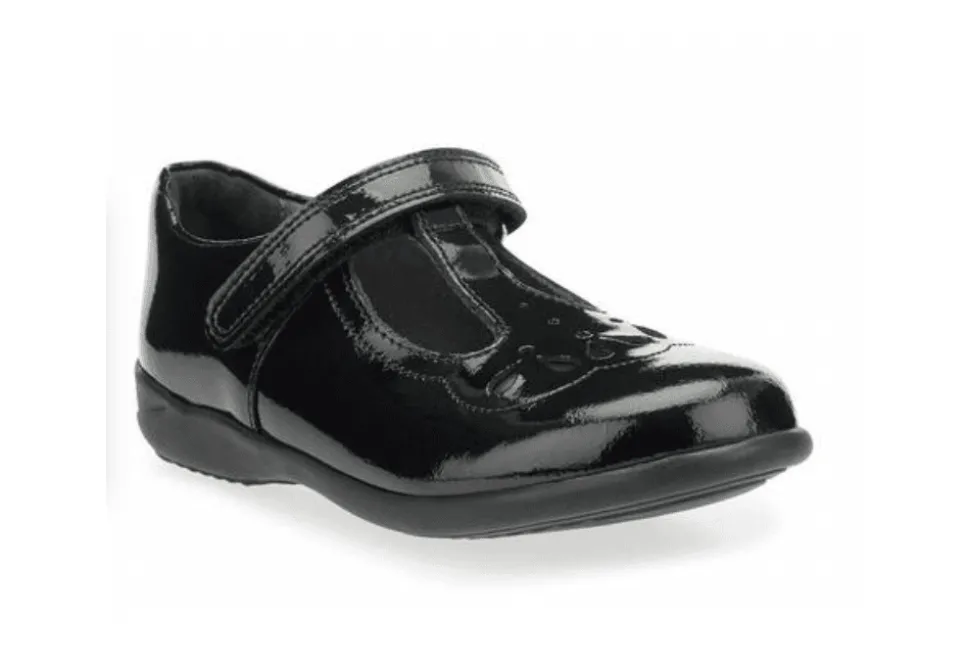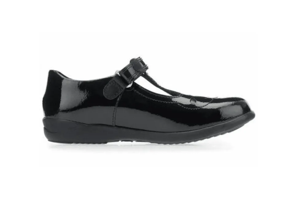 The Poppy Is A Shiny T Bar Girls School Shoe By Start-Rite. The Popppy Features Pretty Detailing And Has Been Crafted From Premium Black Patent.