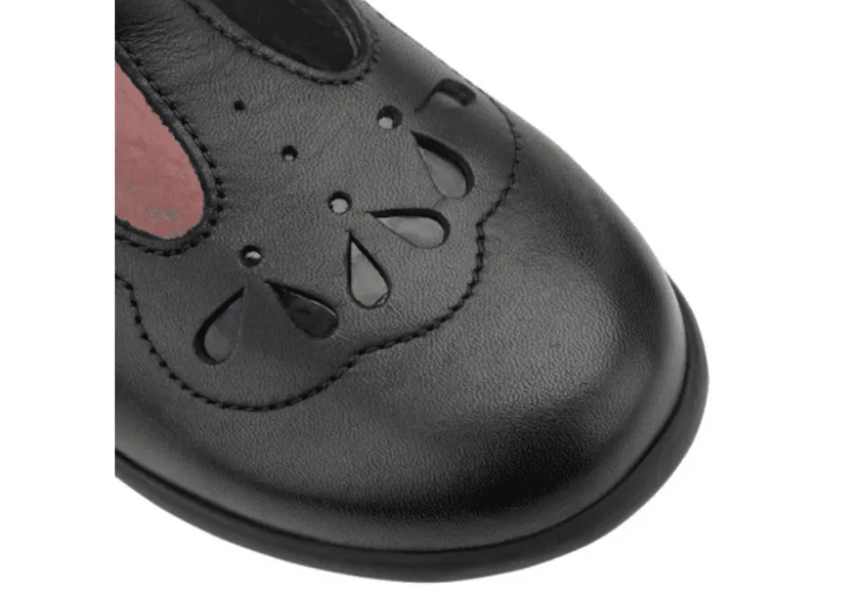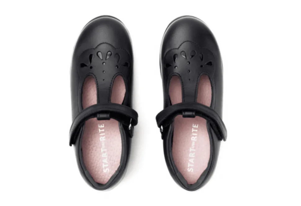 The Poppy Is A Shiny T Bar Girls School Shoe By Start-Rite. The Poppy Features Pretty Detailing And Has Been Crafted From Premium Black Patent.