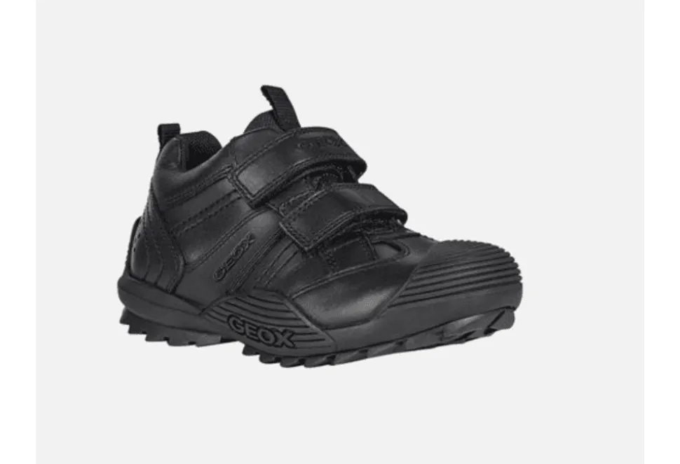 The Savage Is A Boys School Shoe By Geox. The Savage Is A School Appropriate Shoe Featuring A Rubber Sole And A Great Grip. The Shoe Also Features A Removable Footbed For Increased Hygiene And A Double Riptape Fastening For Easy Adjustment.