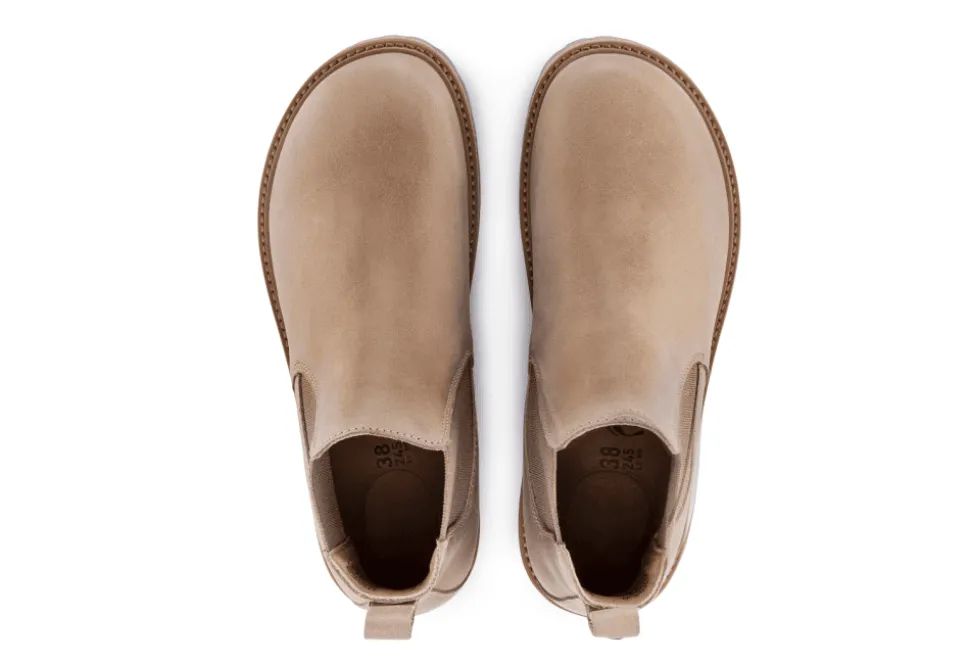 The Stalon Is A Ladies Ankle Boot By Birkenstock. The Stalon Is A Robust And Stylish Chelsea Boot In A Stunning Sandcastle Oiled Leather Upper. The Sole Is Light And Synthetic. The Cork Frame Of The Outer Sole Makes For An Authentic Design And The Upper Is Made From A Hydrophobic Oiled Nubuck Leather.