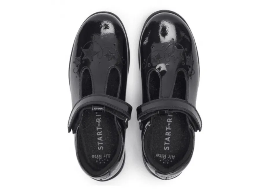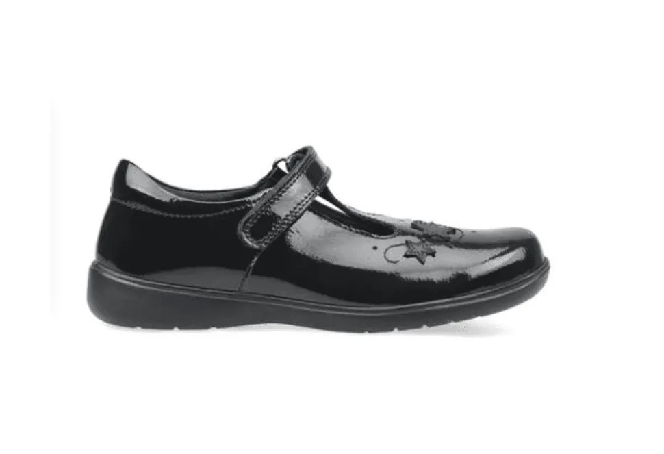 The Star Jump Is A Primary Girls T-Bar School Shoe By Start-Rite. The Star Jump Features Stunning Star Detailing And A Glittery Footbed. Perfectly Positioned Cushioning On The Ankles Ensures Comfort Al Day. The Star Jump Sits On A Comfortable And Flexible Sole Unit To Encourage Natural Movement. The Riptape Fastening And Removable Footbed Ensures A Custom Fit.