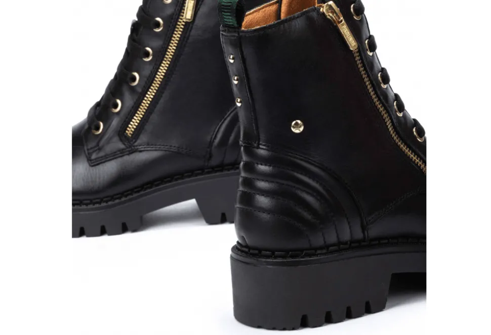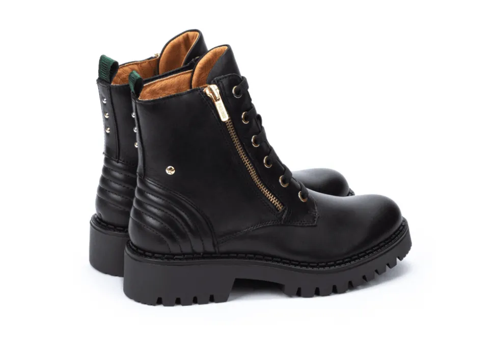 The Aviles Is A Military Inspired Boot By Pikolinos. The Aviles Is A Classic Biker Boot Featuring A Soft Leather Upper With A Unique Heel Design. The Aviles Has Chunky Soles And Gold Hardware To Add An Extra Stylish Touch.