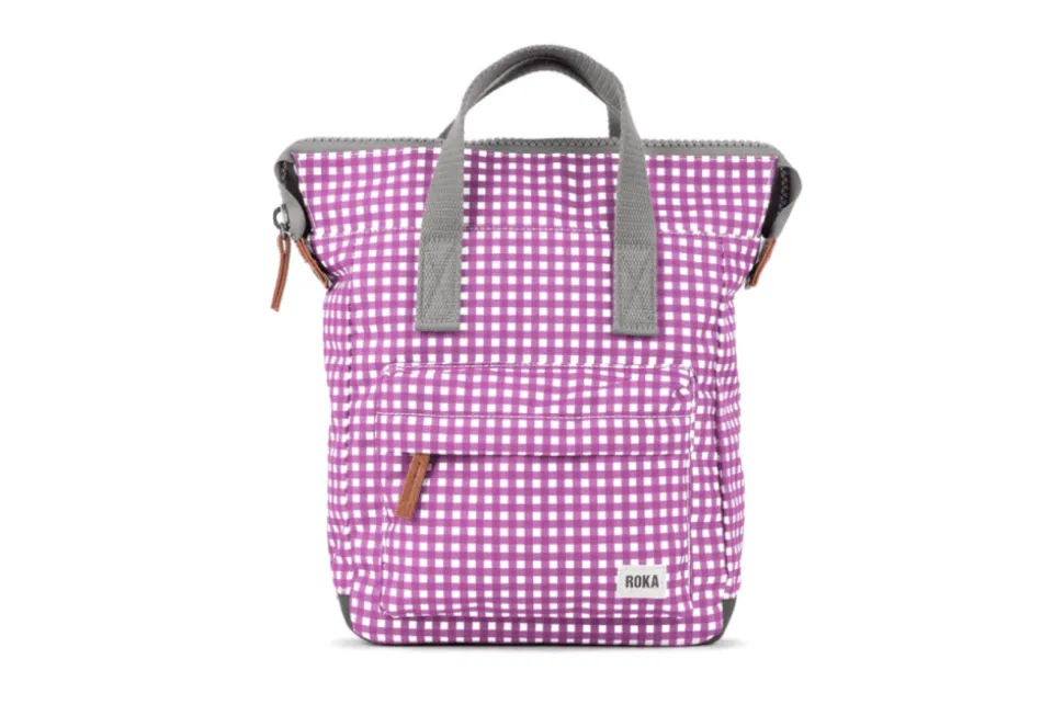 The Gingham Pattern Bantry B Is An Original Backpack By Roka. The Bantry B Features A Chunky Zip At The Top And A Stunning New Summer Gingham Colour.