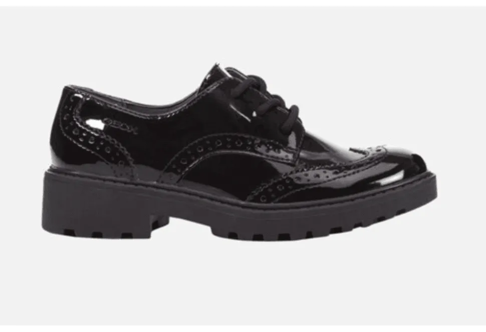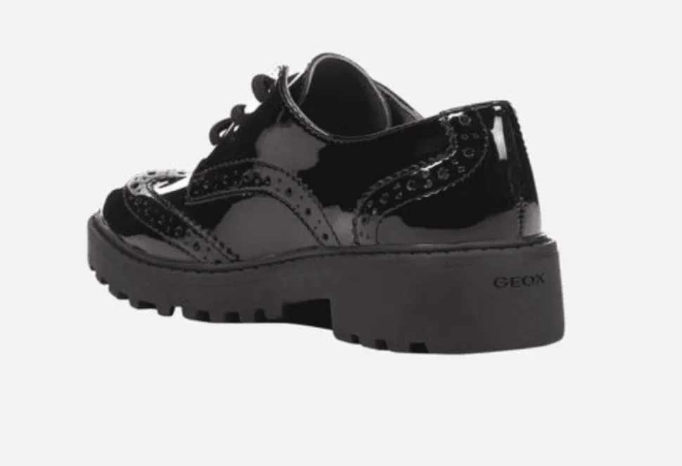 The Casey Is A Girls School Shoe By Geox. This Shoe Is Ideal For All Day Schoolwear And Features Beautiful Brogue Detailing. The Casey Is Breathable And Exceptionally Comfortable. The Casey Has A Formal Aesthetic, Enhanced With Its Patent Leather Effect Material.