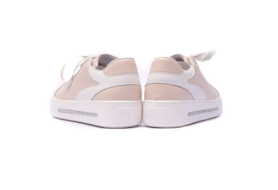 The Cosmic Is A Buffalo Nude Wedged Trainer And Is One Of Latest Designs By Alpe. These Nude Pink Trainers Are Wedged, Made From Beautiful Leather And Will Add Style To Any Outfit. The Trainer Is Complete With White Leather Stripe, Silver Detailing On He Heel And Silver And White Combination Laces.