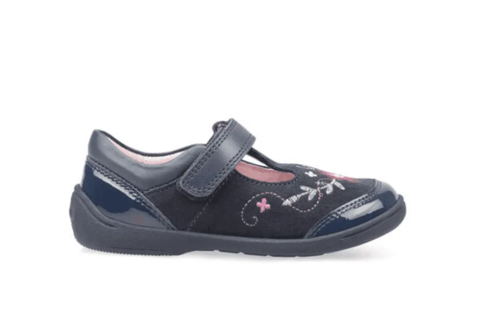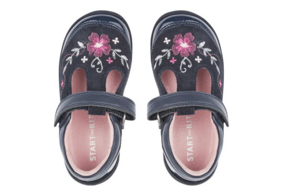 The Dancy Is A Charming T-Bar First Walking Shoe By Start-Rite. The Dance Is A T-Bar Option With A Beautiful Embroidery Floral Pattern Upon A Patent And Suede Mix. The Shoe Features Padded Ankles For Added Ankle Protection And An Easy Velcro Fastening.