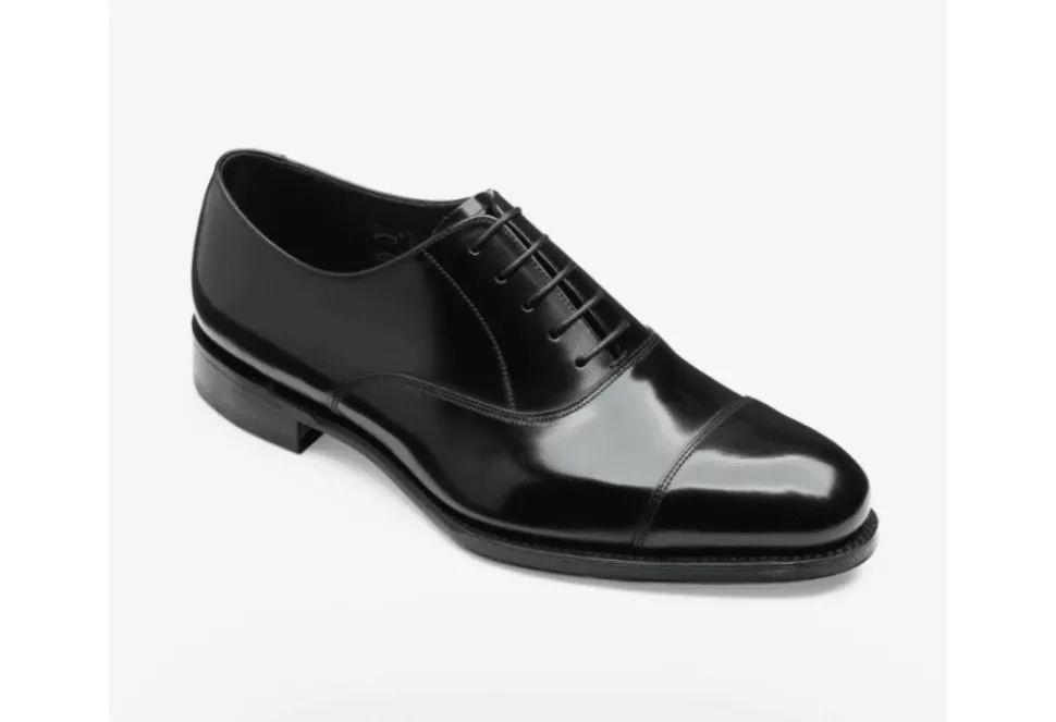 The Elgin Is An Oxford Toe Cap In Black Polished Leather. Made In England.