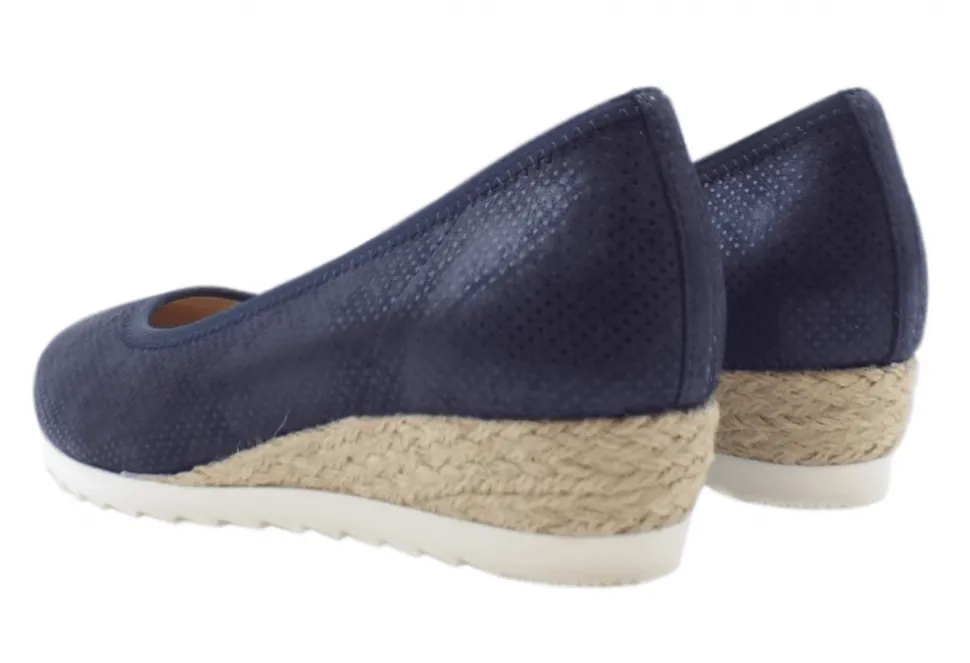 The Epworth Is A Wide Fitting Low Wedge Pump In Blue Foil Print Leather By Gabor. This Shoe Is Perfect For Those Looking For A Wider Fitting Sandal For The Summer Months. The Epworth Guarantees Comfort And Features Easy Walking Technology And A Padded Leather Insole.