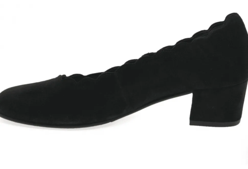 The Gigi Is A Scalloped Edge Court Shoe In Suede By Gabor.