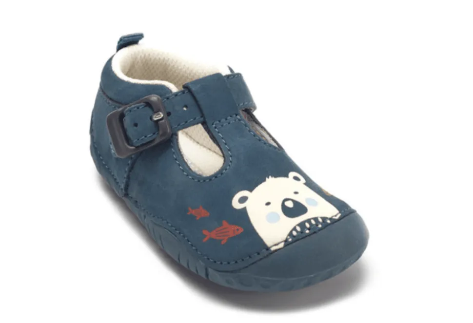 The Grizzly Is A Cute T-Bar Pre-Walker Unisex Shoe By Start-Rite. Designed With A Characterful Polar Bear And With An Adjustable Buckle Fastening. The Grizzly Is Scuff Proof And Will Offer Protection Where Needed.