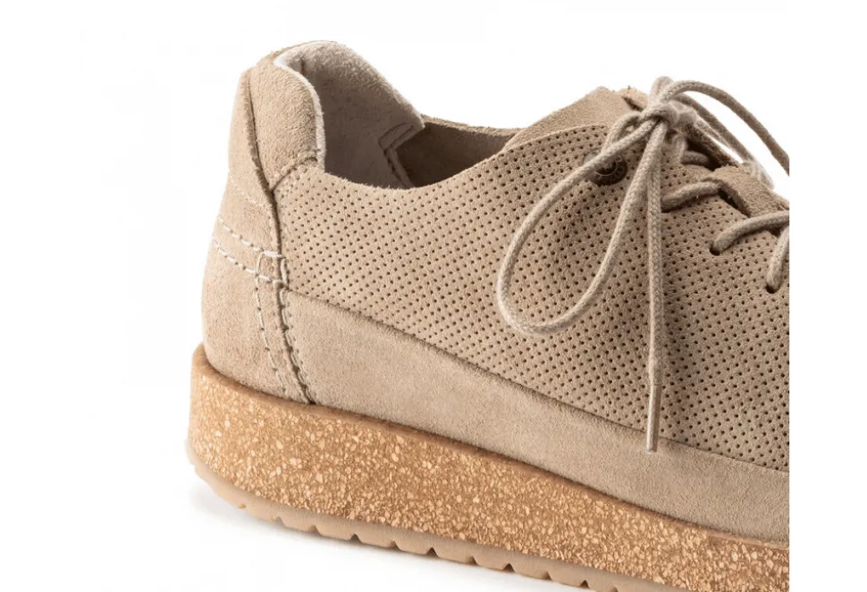 The Honnef Is A Lace Up Shoe By Birkenstock. The Honnef Features A Wide Cork Sole, A Mudguard At The Shoe Tip To Protect Against Dirt, A Padded Heel For Comfort And A Comfortable Footbed. The Footbed Is Removable And Ensure For A Perfect All Day Wear Shoe. The Sandcastle Colour Is Perfect For The Spring And Summer Months!