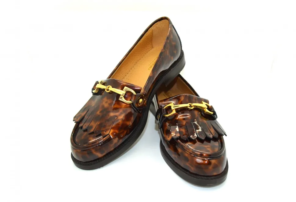 The Staithes Is One Of Our Timeless Classic Pieces In The Watkinson’s Collection. Completed With A Gold Bar, Tassels And Tortoise Shell Detailing This Shoe Provides A Charming Addition To Any Outfit. Crafted In Tortoise Shell Patent Leather This Shoe Is A Fashion Staple For All Seasons.