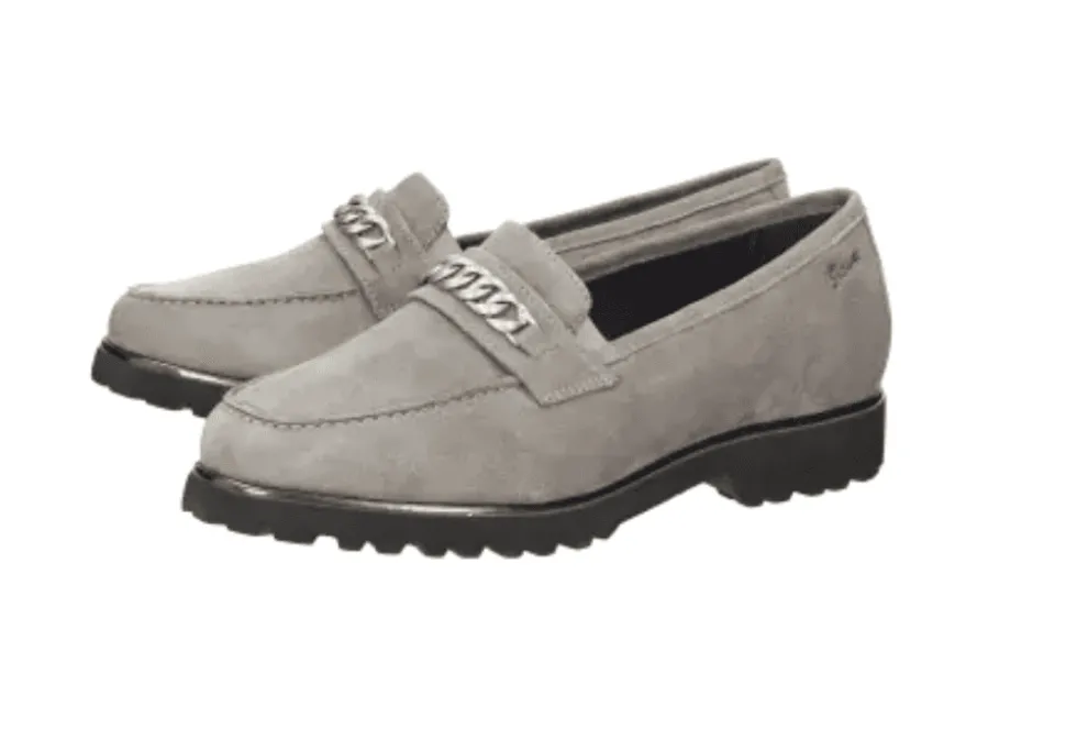 The Meredith 736 H Is A Wide Fitting Ladies Loafer By Sioux. The Meredith 736 Features An Elegant Metal Trim And Elastic Inserts On The Tongue For An Enhanced Fit. The Meredith 736 Has Been Crafted With Supple Suede And Is Leather Lined. This On Trend Loafer Also Features A Removable, Leather Covered Insole With Soft Cushioning Which Can Be Replaced. The Sole Is Lightweight And Rubber For The Ultimate Autumnal Look.