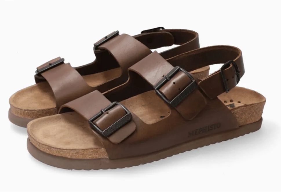 The Nardo By Mephisto Is A Comfortable And Versatile Double Strap Sandal. This Sandal Has A Buckle Fastener On Both Straps And A Holding Strap At The Heel. This Heel Guarantees Style And Stable Support. The Footbed Is Made From Natural Cork With Integrated Soft Air Technology. These Sandals Guarantee Comfortable Walking And Reduces Hard Tread Impact On The Body.