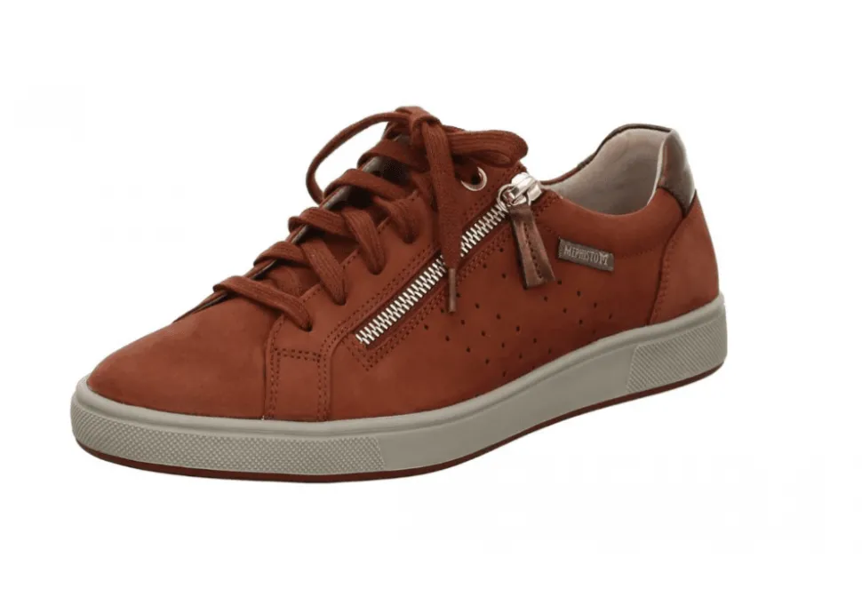 The Nikita Is A Ladies Trainer By Mephisto. The Nikita Is A Stunning Rust/ Orange Colour And Will Complement Any Outfit. The Insole Is Detachable And The Nikita Also Features Sot Air Technology. The Outsole Is Equipped With Shock-Absorber To Minimise Impact And To Guarantee An Effortless Walk.
