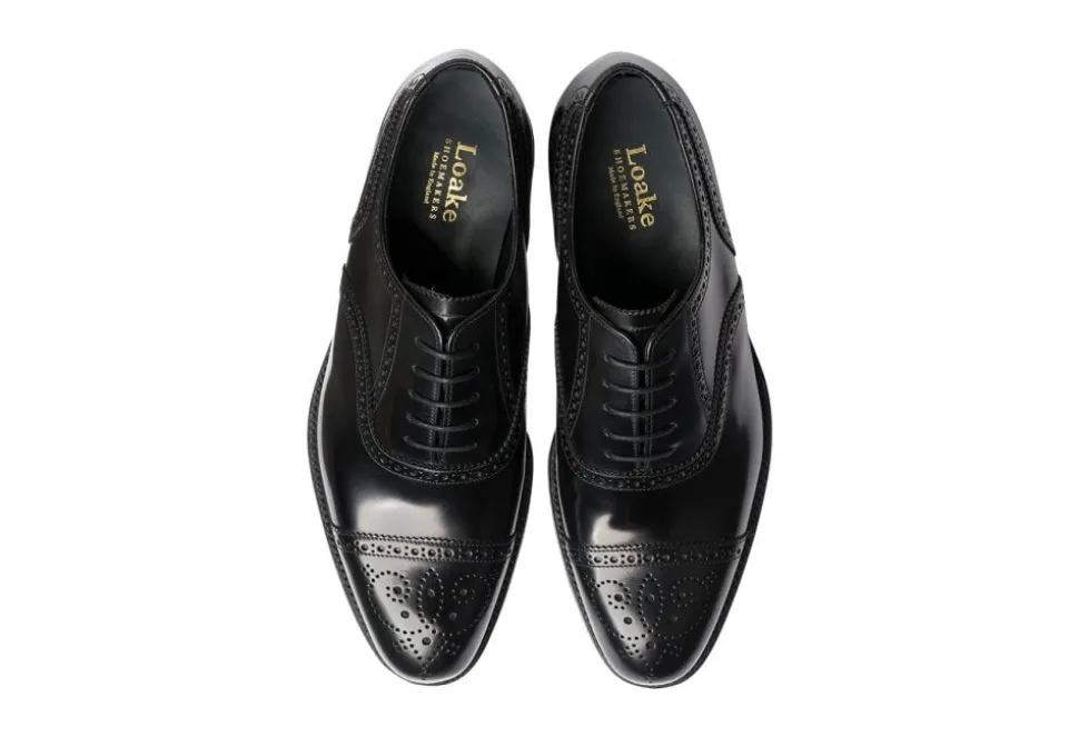 The Oxford Semi Brogue Shoe By Loake Is Available In Black Polished Leather, Made Using The Chancery Last In F For A Standard Fit. Overton Is Made In England By Loake Shoemakers In England.