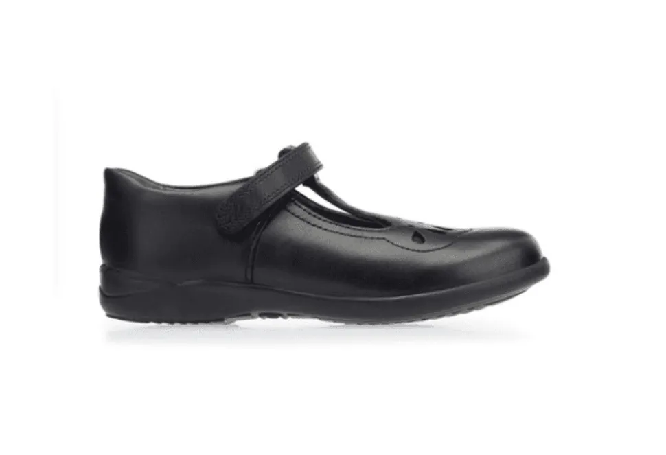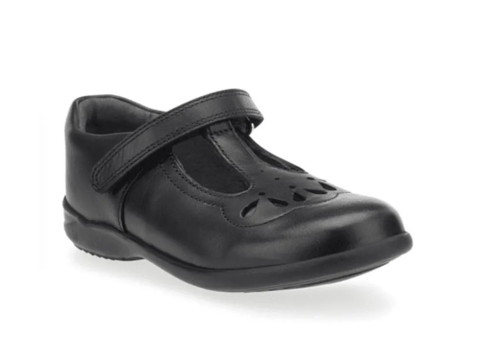 The Poppy Is A Shiny T Bar Girls School Shoe By Start-Rite. The Poppy Features Pretty Detailing And Has Been Crafted From Premium Black Patent.