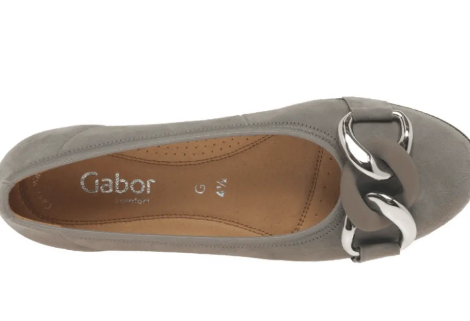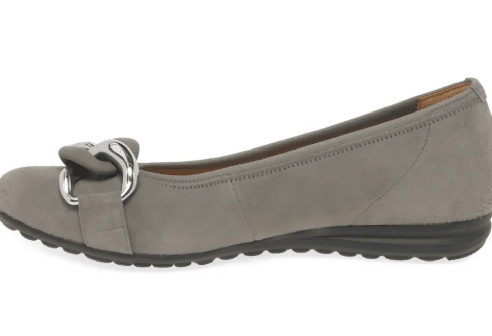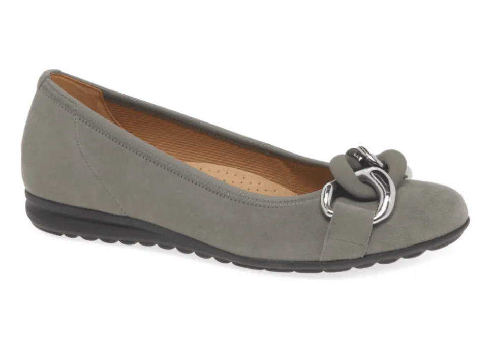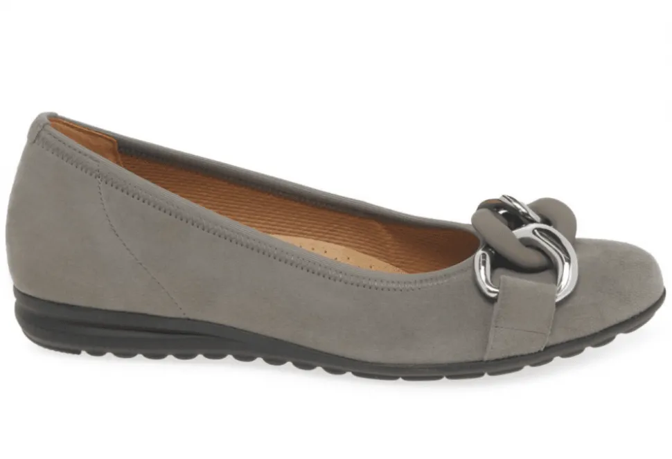 The Sabia Is A Casual Ladies Pump By Gabor. The Sabia Features A Simple Design And A Suede Leather Upper. These Stylish Pumps Feature A Soft Textile Lining And A Shock Absorbing Flat Sole. The Sabia Has Been Finished With A Sleek Chain O The Instep And Provides An On-Trend Finish To Any Outfit.
