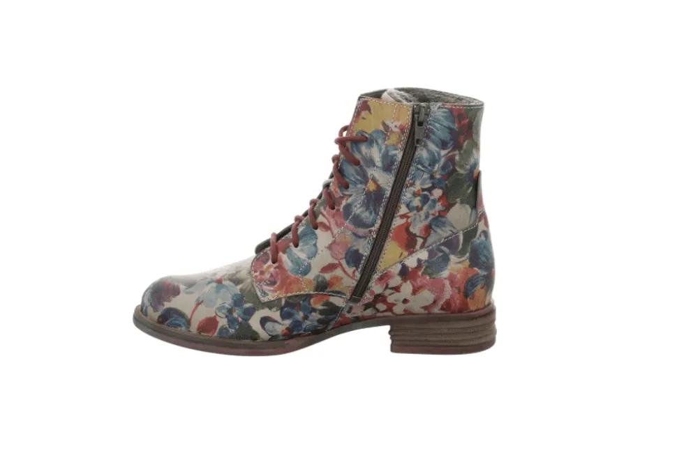 The Sanja 01 Is A Casual Ladies Lace Up Ankle Boot By Josef Seibel. The Ankle Boot Features A Beautiful Floral Print And A Soft Lining For Added Comfort On Colder Days. The Design Features A Side Zip And Laces.