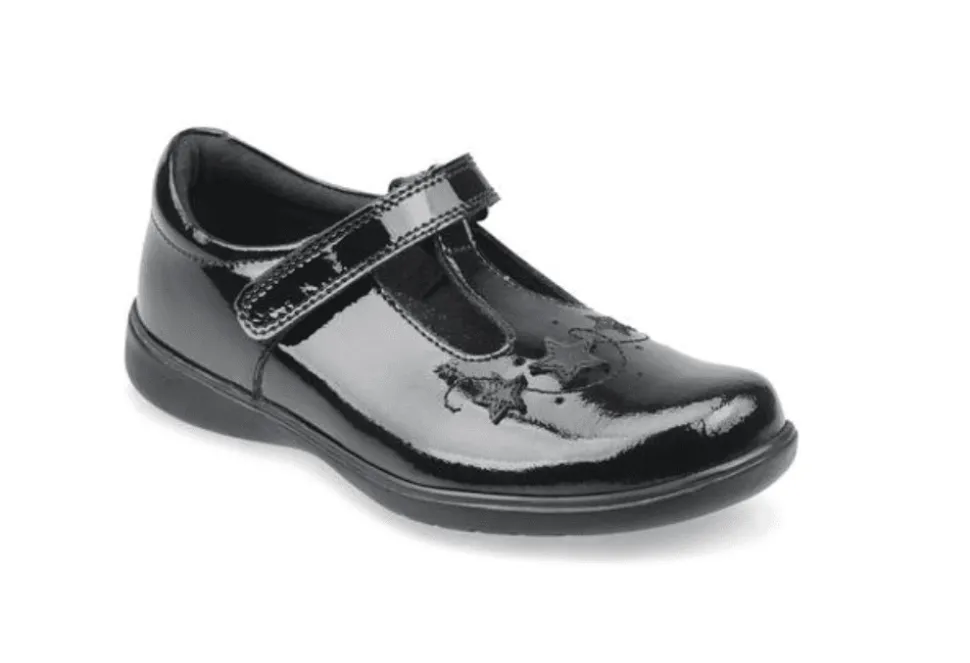 The Star Jump Is A Primary Girls T-Bar School Shoe By Start-Rite. The Star Jump Features Stunning Star Detailing And A Glittery Footbed. Perfectly Positioned Cushioning On The Ankles Ensures Comfort Al Day. The Star Jump Sits On A Comfortable And Flexible Sole Unit To Encourage Natural Movement. The Riptape Fastening And Removable Footbed Ensures A Custom Fit.
