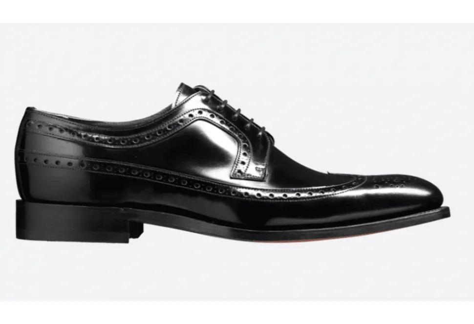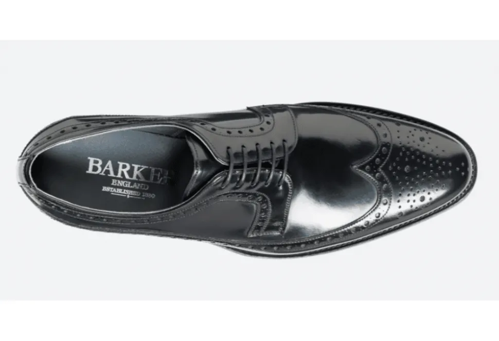 The Woodbridge Is A Long Wing Brogue Derby Crafted By Barker, England. The Black Polished Leather Finish Is Stylish And Versatile. The Detailing On This Brogue Is Second To None And Is A Great Choice For Formal Occasions.
